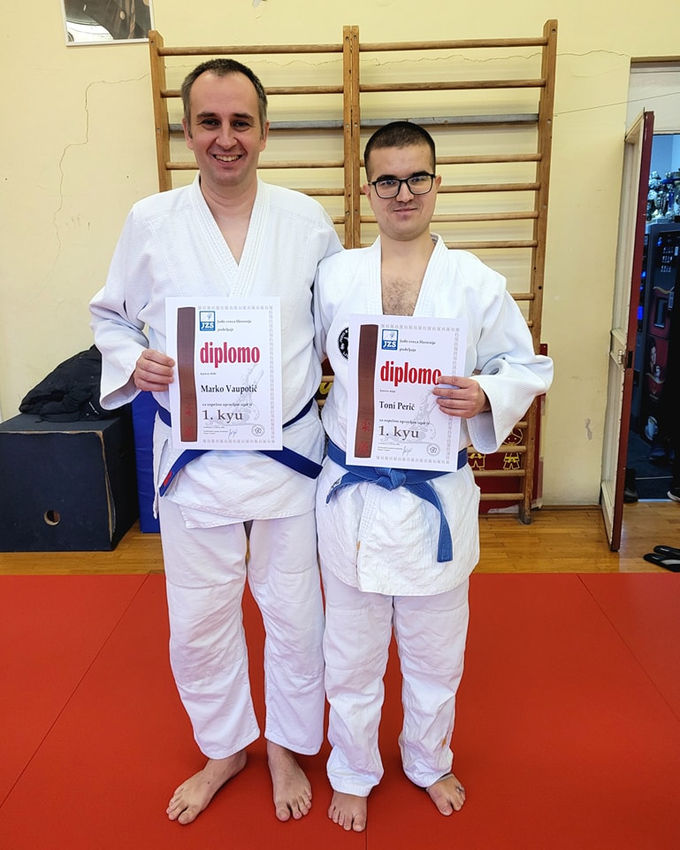 V februarju so naši člani opravili izpite za višje pasove pri JZS. In sicer Marko in Toni sta opravila izpit za rjav pas, Beni in Tina izpit za 3.DAN in Darko izpit za 4. DAN.